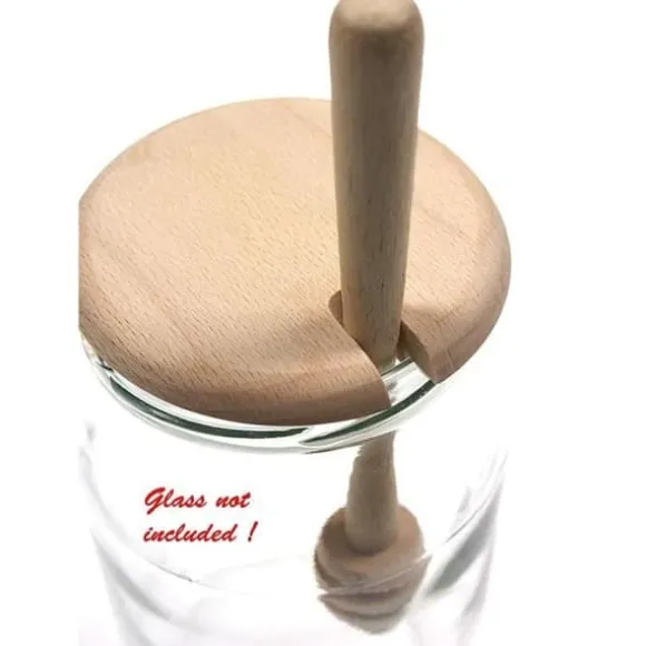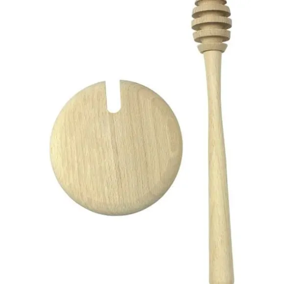 Set med honungssked och burklock * Tillverkade av naturligt bokträ * Burklocksdimensioner: dia. 8,5 cm | 3,5″ * Honungsskedens dimensioner: 18 cm | 7″ * Endast handtvätt, tål inte diskmaskin