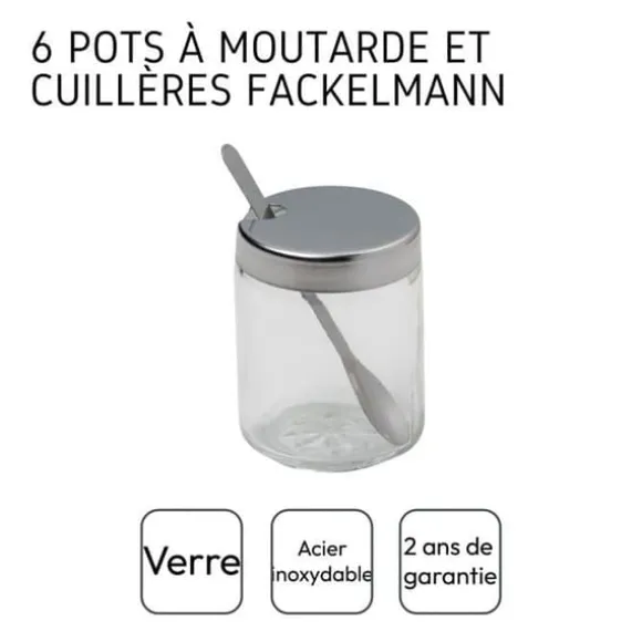 BESKRIVNING : Set med 6 senapsburkar med sked för att presentera senapen på ditt bord. DET LILLA + : Det är upp till dig att fylla dem med senap, ketchup, majonnäs eller såsen du väljer för en trevlig presentation och enkel servering. KOMPONERING : I glas och rostfritt stål, vi uppskattar den traditionella, enkla och effektiva brasserie-designen på dessa senapsburkar. DIMENSIONER : 6 x 4,5 cm. ANVÄNDNING : De passar överallt, på ditt vardagsbord eller när du bjuder, på dina festbord; för proffs, i dina semesterbostäder eller i ditt café/restaurang. Fackelmann erbjuder detta set med 6 senapsburkar, var och en med en sked. Det är upp till dig att fylla dem med senap, ketchup, majonnäs eller såsen du väljer för en trevlig presentation och enkel service! De är perfekta för att presentera såser för dina bourguignonfondue-er, till exempel. Dessa senapsburkar med brasserie-design, enkel och effektiv, hittar sin plats överallt! På ditt vardagsbord, när du bjuder in, eller på dina festbord… För proffs, i dina semesterbostäder eller i ditt café/restaurang. De är praktiska när du lagar mat: det är bra att slippa ta fram din stora burk med senap när du ska blanda i rätten (palette à la diable eller kanin med senap) eller till dina kalla såser och vinägrettsåser.