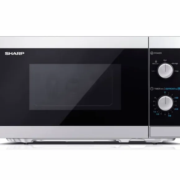 Sharp mikrovågsugn med klassisk design med två vred för enkel betjäning