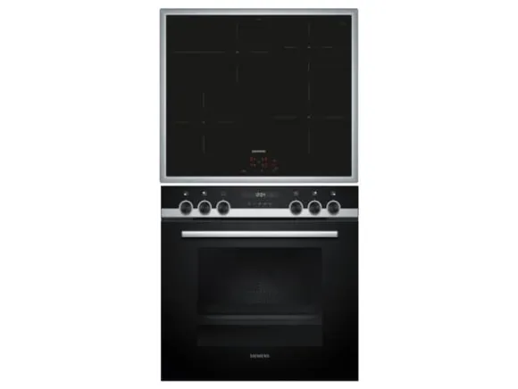 Siemens HE517BBS4 + EI645CFB6E, Induktionshäll med zon, 4 zone(s), Glass-keramisk, Svart, Röra, 58,3 cm