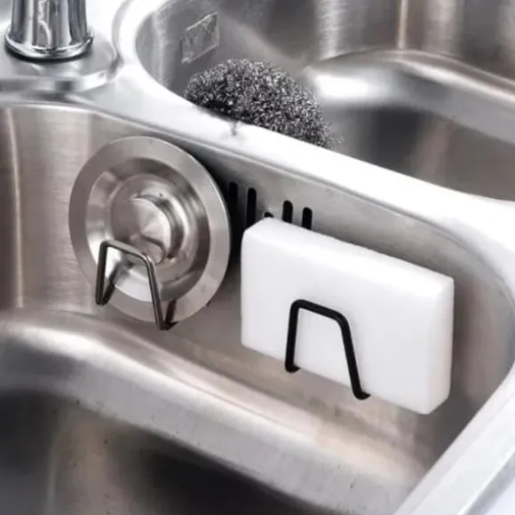 Håll din disksvamp ordnad och i bekvämt räckhåll med denna självhäftande hållare i snygg svart färg. Den enkla men smarta designen gör det möjligt att snabbt och lätt placera din disksvamp på diskbänken eller vid handfatet. Den starka självhäftande ytan säkerställer att hållaren sitter stadigt på plats utan att lämna märken eller skador på ytan. Håll din kökssvamp organiserad och lättillgänglig med denna praktiska hållare.
