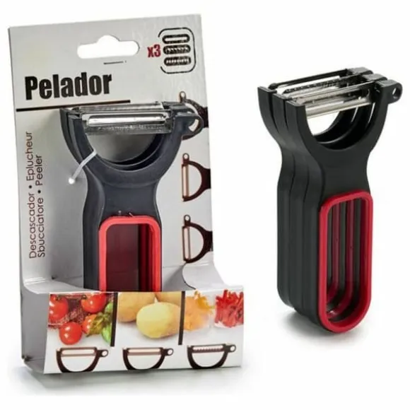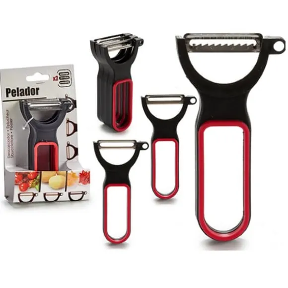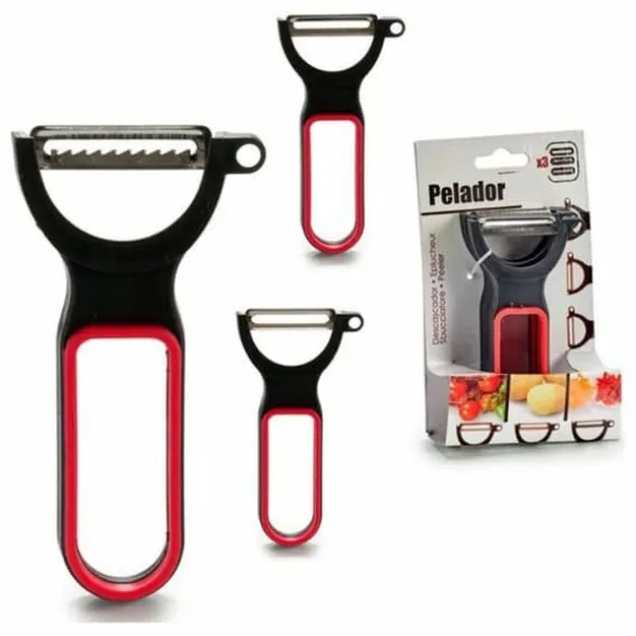 Setet med skalare från BigBuy Home är det perfekta verktyget för dem som söker en praktisk och effektiv allierad i köket. Detta set inkluderar tre skalare i svart och röd, vilket ger en stilfull touch till dina köksredskap. De är tillverkade av högkvalitativa material, inklusive stål för bladen, vilket garanterar en snabb och precis skärning, medan gummi, polypropen och plast som används i designen ger ett säkert och bekvämt grepp, vilket förhindrar skador under användning. Med sin ergonomiska design underlättar dessa skalare inte bara skalning av frukter och grönsaker, utan de är också lätta att rengöra och förvara. Idealiska för alla färdighetsnivåer i köket, kombinerar detta set funktionalitet och estetik, vilket gör att du kan njuta av att laga mat och förbereda dina favoritmåltider på ett enklare sätt. Med setet med skalare från BigBuy Home blir varje förberedelse en trevlig och effektiv upplevelse.