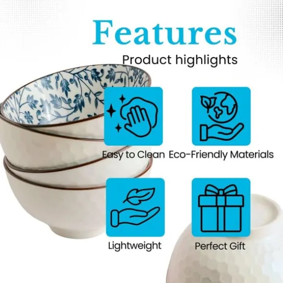 De högkvalitativa skålarna är lätta att rengöra och kan användas i diskmaskin och mikrovågsugn. Porslinsservisen levereras i en presentförpackning och är därför också en perfekt present till fans av det japanska köket.