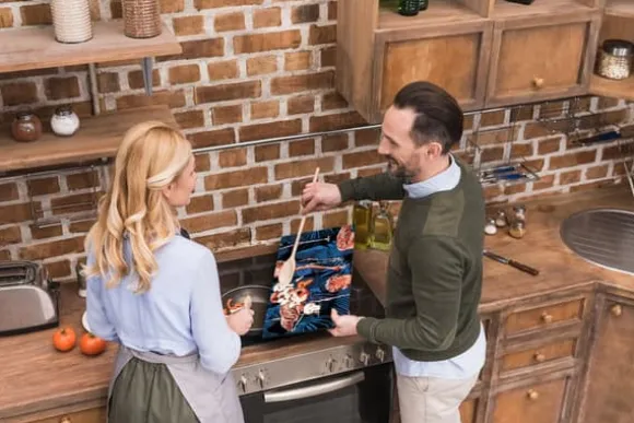 GLASPLATTAN KAN ANVÄNDAS SOM:✅Ett skydd mot stänk vid matlagning för elektriska, keramiska och gasspisar. När det gäller gasspisar rekommenderar vi att man är särskilt uppmärksam på användningen. Om hällen bara lutar mot väggen, håll ett säkerhetsavstånd på 15 cm från brännaren. Plattan kan limmas fast på väggen med hjälp av speciell skumtejp (finns i vår butik) då kan avståndet från brännaren vara
