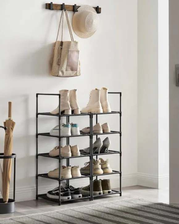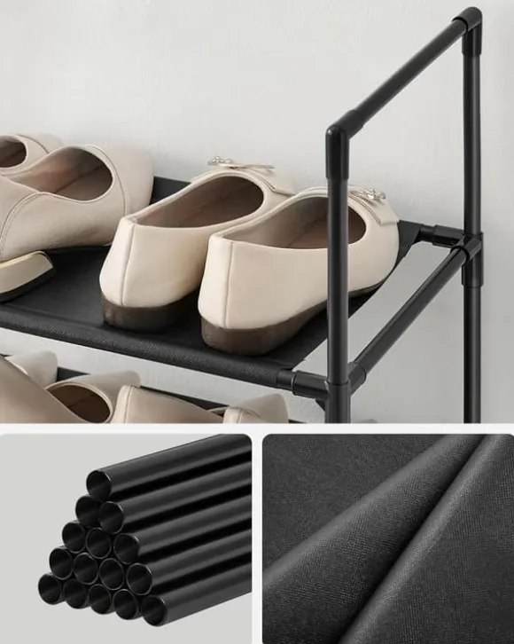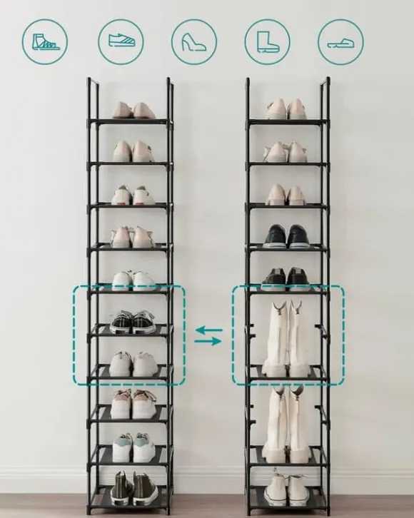 - Enkel justering: Vill du förvara stövlar i detta skoställ? Inga problem! Du behöver bara ta bort en hylla för att skapa tillräckligt med utrymme för stövlar.