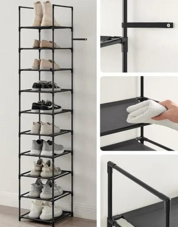 - Tar lite golvyta tack vare den smala formen och erbjuder fortfarande tillräckligt med förvaringsutrymme för din skosamling.