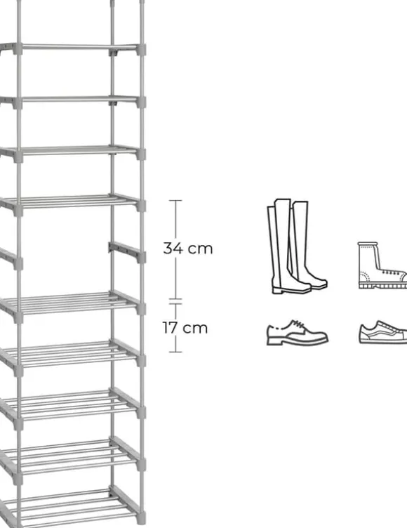 – Nya skor är välkomna! Måste du ge upp många av dina skor på grund av platsbrist? Det är synd för dig som ett komplett skofreak! Detta 10-lagers skoställ ger dig gott om förvaringsutrymme för alla dina nya skor!