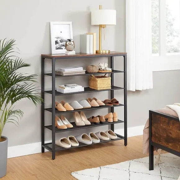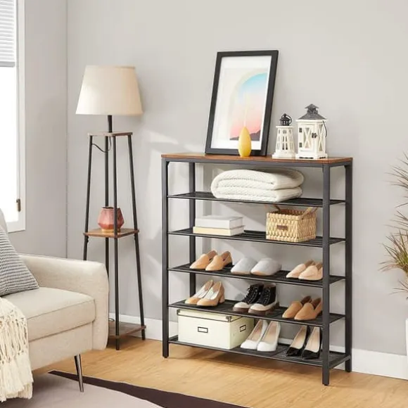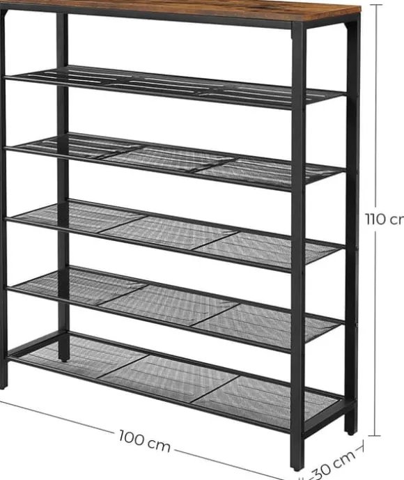 – Du behöver inte oroa dig för lagringsutrymme! Denna 5-våningshylla ger tillräckligt med utrymme för 20 par snygga skor och ger dem en perfekt scen att glänsa på. Den iögonfallande vintageytan är perfekt för väskor, nycklar eller små växter.
