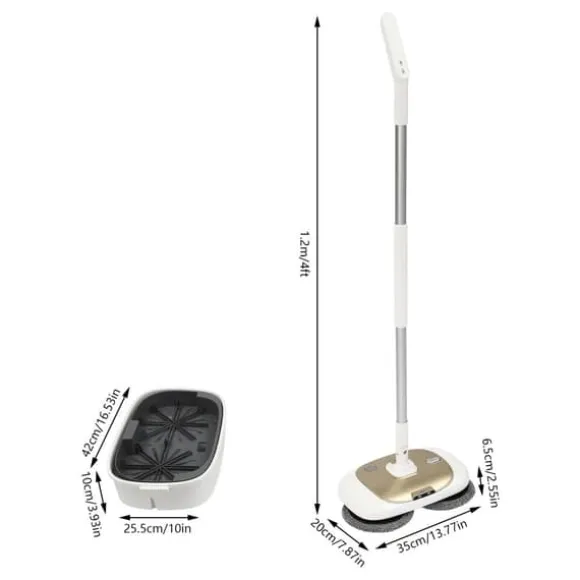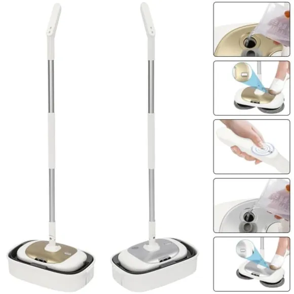 Denna gula, sladdlösa snurrmopp kombinerar kraft och komfort. Med cirka 150 rpm tar den enkelt bort smuts på kakel, trä, laminat, marmor och PVC-golv. Den inbyggda 400 ml vattentanken möjliggör jämn fuktning för fläckfri finish utan onödig påfyllning.