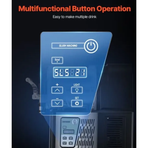 Denna uppgraderade slushmaskin är idealisk för att skapa en mängd olika drycker, med 15 justerbara temperaturnivåer som låter dig kontrollera mjukhet och hårdhet för dina favoritdrycker. Oavsett om det är juice, te, margaritas eller iskaffe, denna maskin kan anpassa sig för att skapa den perfekta drycken för dig.