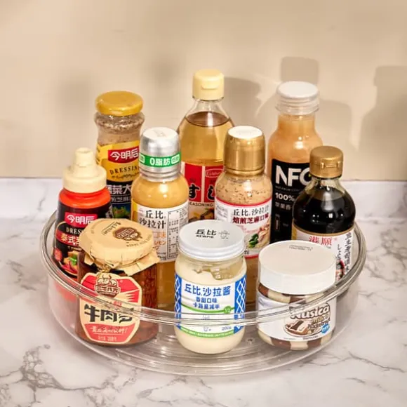 Denna 30 cm breda snurrbricka i transparent PET är perfekt för att effektivisera förvaringen i ditt kök. Med sin snurrfunktion blir det enklare än någonsin att nå dina köksartiklar. Höjden på 8 cm ger gott om utrymme för olika produkter samtidigt som designen håller dem lättillgängliga och välorganiserade.