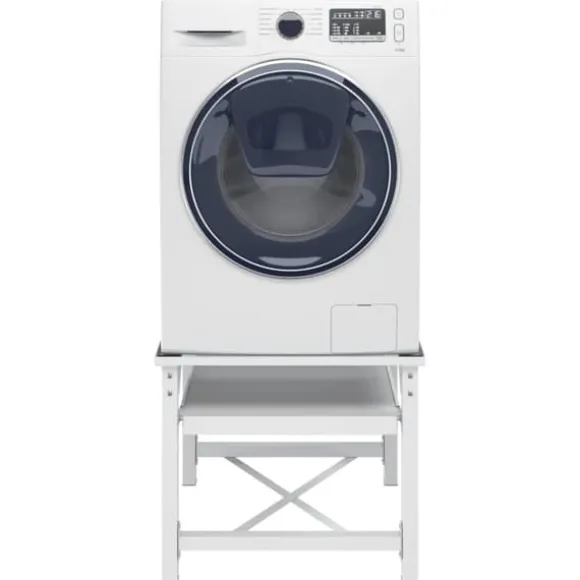 Förhöjningssockeln är tillverkad i högkvalitativt stål, vilket gör den tillräckligt robust och stadig för att kunna bära upp en tvättmaskin på upp till 100 kg. Tack vare dess halkfria fötter, kommer din tvättmaskin stå säkert. Piedestalen har också en utdragbar hylla för extra lagringsutrymme.