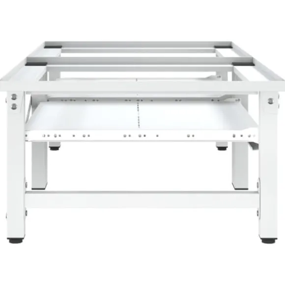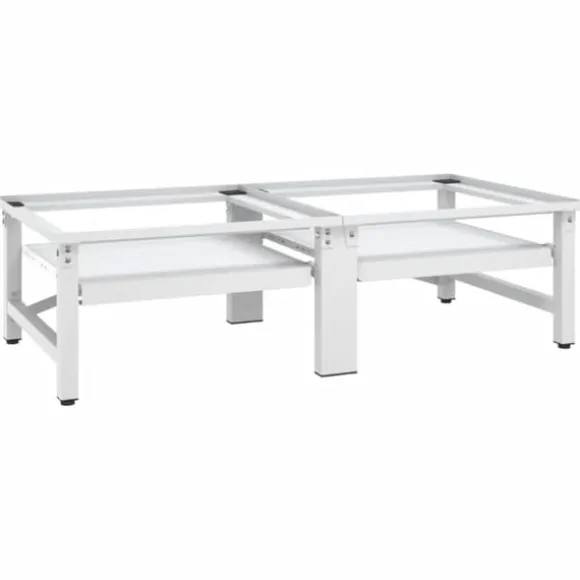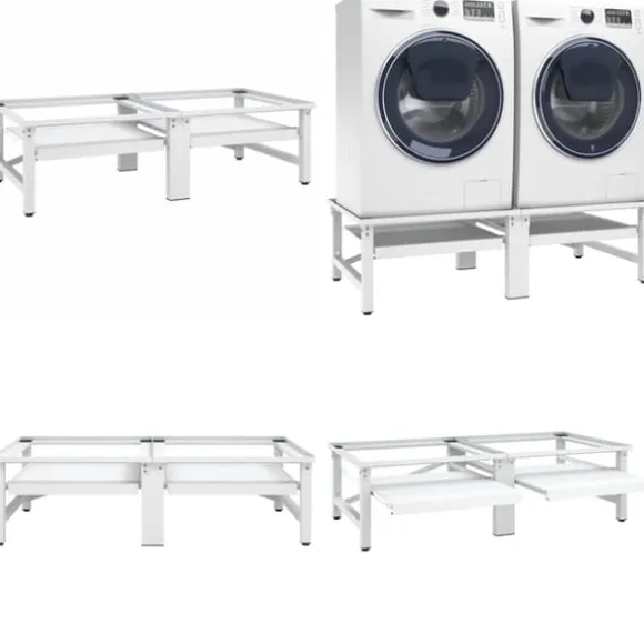 Sockeln är tillverkad i starkt stål, som gör den väldigt robust, stadig och vardera klarar av en tvättmaskin på upp till 100 kg. Tack vare de halkfria plattorna kommer din tvättmaskin att stå säkert och stabilt. Fötterna är justerbara i höjd och gör det möjligt att anpassa den efter ojämna golv. Produkten är dessutom utrustad med två praktiska utdragbara hyllor för extra lagringsutrymme.