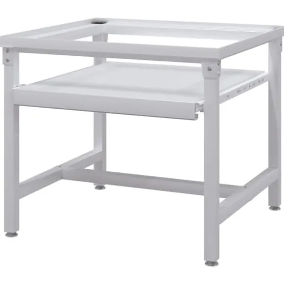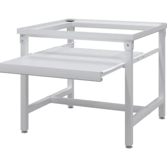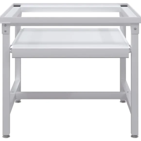 Förhöjningssockeln är tillverkad i högkvalitativt stål, vilket gör den tillräckligt robust och stadig för att kunna bära upp en tvättmaskin på upp till 100 kg. Tack vare dess halkfria fötter, kommer din tvättmaskin stå säkert. Piedestalen har också en utdragbar hylla för extra lagringsutrymme.