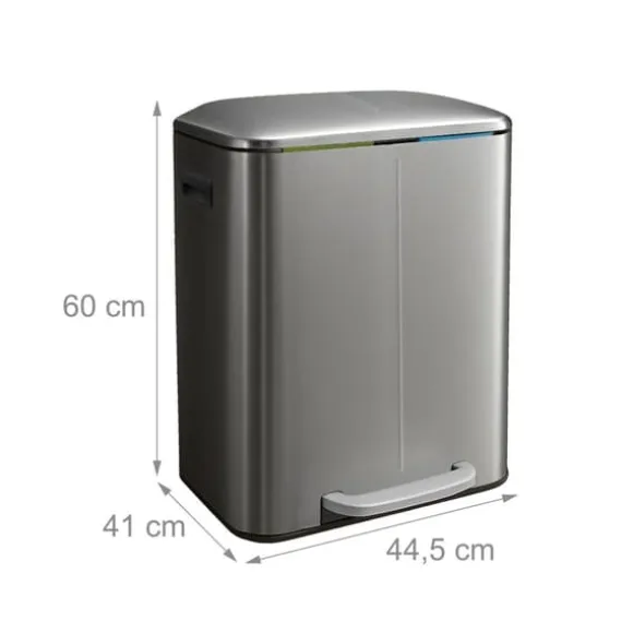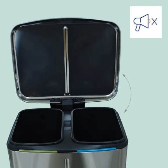 Denna 2-facks avfallssorteringsbehållare erbjuder en effektiv lösning för sortering av förpackningar, papper, organiskt avfall eller restavfall hemma. Den har en hygienisk fotpedal för handsfree öppning av locket, mjukstängande lock och avtagbara innerbehållare för enkel tömning, vilket kombinerar funktionalitet med modern design.