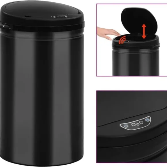 Soptunna med automatisk sensor 40 L kolstål svart Denna soptunna med automatisk sensor är mycket praktisk och hygienisk eftersom du inte längre behöver vidröra locket för att slänga skräp. Soptunna med automatisk sensor 40 L kolstål svart (1x) Din beställning kommer att levereras i ett paket. Så snart din beställning har packats får du omedelbart din leveransinformation från oss. Vi hoppas att du blir nöjd med ditt köp.