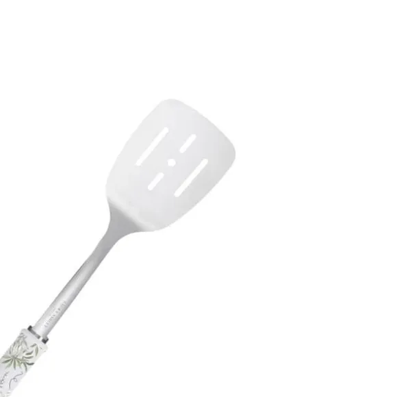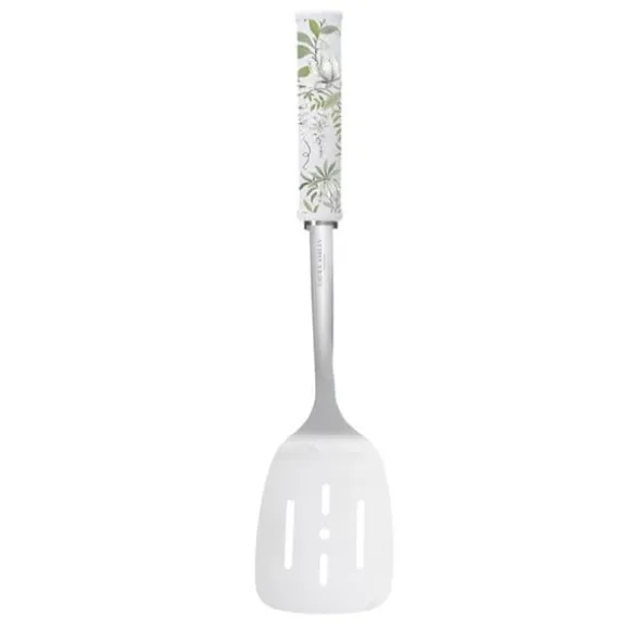 Det keramiska handtaget säkerställer ett ergonomiskt och säkert grepp, vilket minskar trötthet även vid längre användning. Värmebeständig och tålig mot höga temperaturer, passar den perfekt för fritering och intensiv matlagning. Med sin rena och eleganta design förkroppsligar denna spatel den tidlösa charmen av Laura Ashley, vilket förenar funktionalitet och sofistikering i ditt kök.