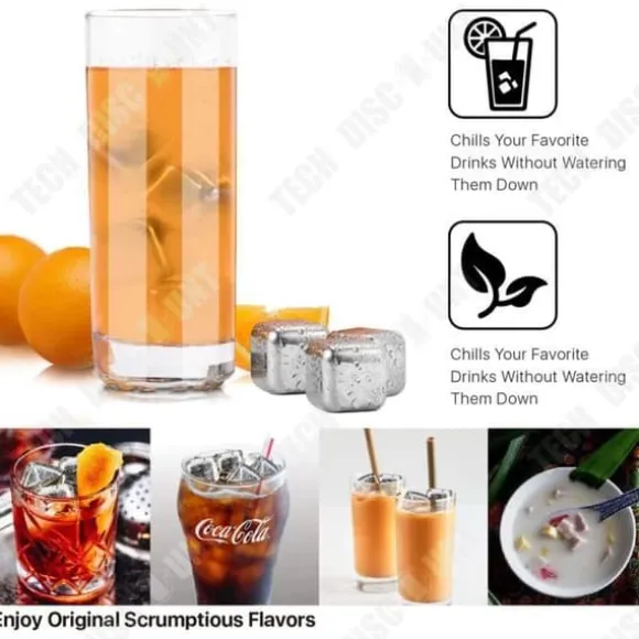 Detta set med 6 fyrkantiga isbitar i SUS304 rostfritt stål är perfekt för att kyla dina drycker utan att späda ut dem. Med en längd på 27 mm på sidan är de fyllda med rent vatten och livsmedelsalkohol, vilket ger en spegelblanka yta. Njut av en optimal smakupplevelse med dessa återanvändbara och eleganta isbitar.