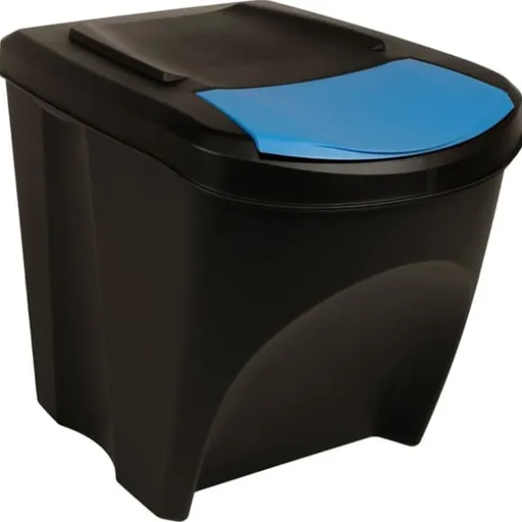 Papperskorgen är tillverkad i polypropen, vilket gör den stark, lätt och enkel att rengöra. Locket på lådan är avtagbart och möjliggör enkel och snabb rengöring. Tack vare etiketterna blir sortering av skräp enkelt. Dessutom sparar de utrymme tack vare dess stapelbara design.