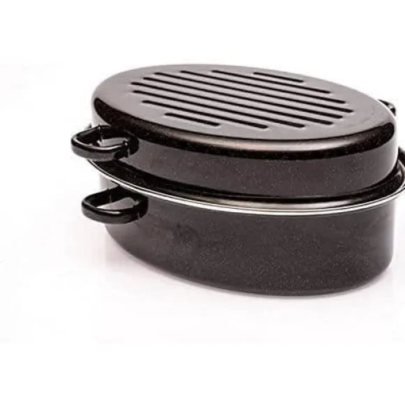 Upptäck den 42 cm långa ugnsgrytan från BAUMALU tillverkad av kolstål med en svart emaljbeläggning. Den är kompatibel med alla hällar inklusive induktion och har en kapacitet på 11 liter för dina läckra rätter.