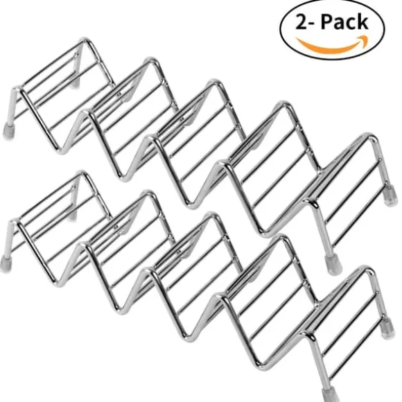 Välkommen till vår butik! Detta set innehåller två tacoställ, vardera utformade för att rymma 4 till 5 fack, vilket gör dem lämpliga för både hårda och mjuka tacos. Tillverkade av premium, livsmedelssäkert rostfritt stål, är dessa hållare hållbara och rostfria. Varje ställ levereras med 4 skyddande mattor för att säkerställa stabilitet och förhindra att de glider eller repor på bordet. Den vågformade designen håller tacos snyggt på plats, så att du kan lägga till ingredienser utan spill och bibehålla skalets krispighet. Perfekt för att hålla tacoskal upprätta och vackert presenterade, idealiska för användning hemma, fester, barer, trädgårdar, kontor, restauranger och andra sammankomster. Dessutom kan dessa mångsidiga ställ hålla varmkorv, smörgåsar, bröd, burritos, tortillas och rullar, vilket gör dem till en utsökt uppvisning för alla maträtter eller middagsmiljöer. Lätt att rengöra och diskmaskinssäker, men inte mikrovågsugn. Varje ställ mäter cirka 8,7 x 2,6 x 1,6 tum (22 x 6,5 x 4 cm). Paketet innehåller 2 tacoställ. Nöjdhet: Våra kunder är vår högsta prioritet. Om du upptäcker några produktproblem efter att du mottagit varorna, såsom skador eller felaktig mängd varor, vänligen kontakta säljaren omedelbart. Vi gör vårt bästa för att ge dig tillfredsställande kundservice.