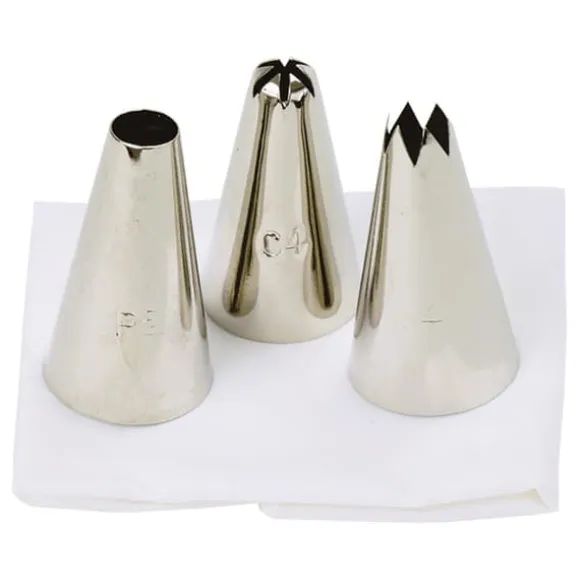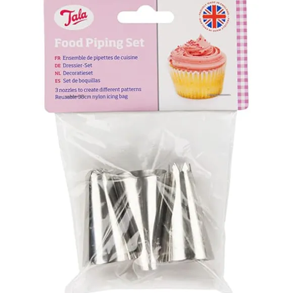 Talas Dekoreringset levereras med 3 munstycken för att hjälpa till att skapa olika mönster när du spritsar glasyr eller mat. Uppsättningen är utmärkt för spritsning av smörkräm, frosting, vispad grädde och potatismos. Påsen är också återanvändbar.