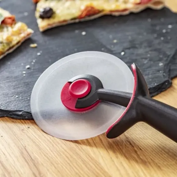 Pizzaskärare idealisk för att skära pizzor, pajer och pajer utan att repa disken. Avtagbart anti-repa tritanblad. Ett helt nytt sortiment av premium Tefal-redskap designade med uppfinningsrikedom för enkel matlagning.