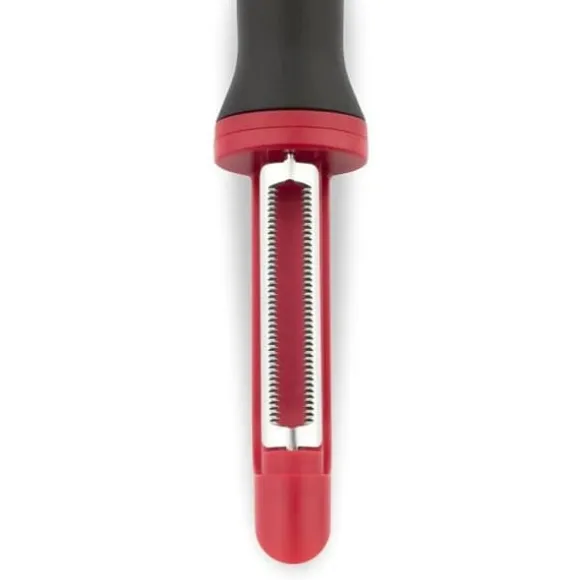 Tomatskalare i plast, nylon och 15% glasfiber + handtag Insats i svart och rött rostfritt stål. Tandat blad. Snabb och enkel peeling av mjukt skinn. Perfekt peeling. Kan diskas i diskmaskin.