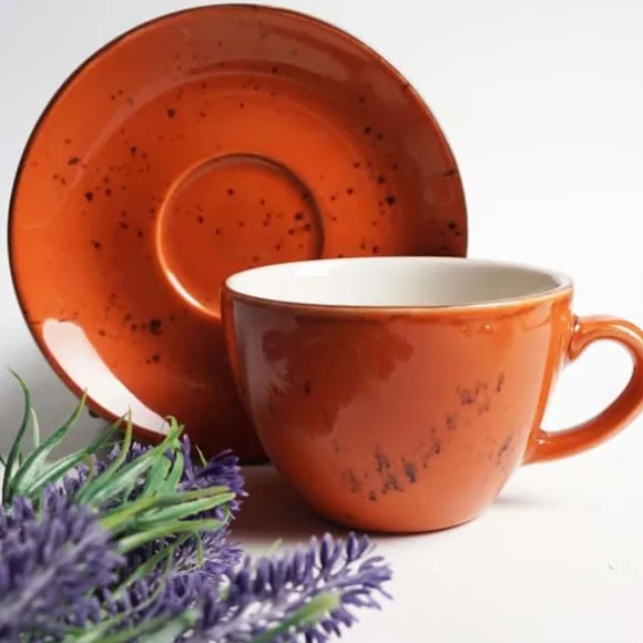 En rik kollektion av handdekorerad porslin i fem livfulla färger. Kombinera krämfärgade, orange, blå, grå och olivgröna delar för att skapa ett unikt och överraskande utseende på bordet, och maten kommer att se lika bra ut som den smakar. Servisen är hållbar och motståndskraftig, designad för att klara den intensiva användningen i ett professionellt kök. Material: vitrifierad porslin. Bränntemperatur: 1050° och 1400°C. Temperaturbeständighet: 180°C