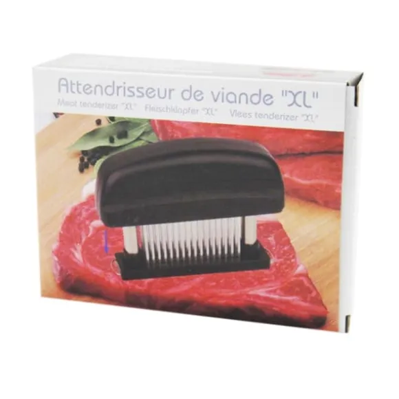 Köttmöraren är utformad med skarpa knivar av rostfritt stål som hjälper till att bryta ner tuffa fibrer och bindväv i köttet. Detta gör köttet öppet för marinader och kryddor, vilket ger det en mer utsökt smak och textur.