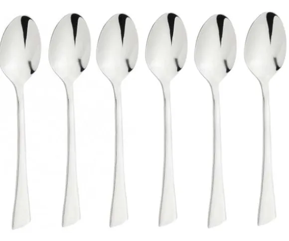 Tesked av högpolerat rostfritt stål. Skedar tål maskindisk. Längd 14cm Setet innehåller 6 st förpackade i blister.