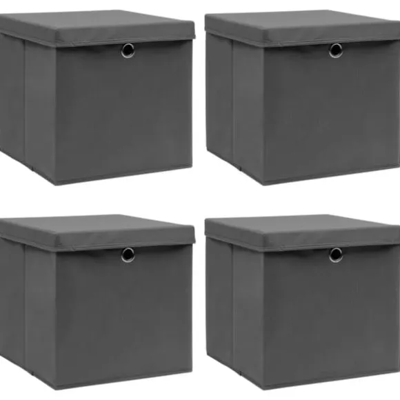 Förvaringslådor med lock 4 st grå 32x32x32 cm tyg Dessa vikbara förvaringslådor ger dig gott om plats att förvara olika saker. Förvaringslådor med lock 4 st grå 32x32x32 cm tyg (1x) Din beställning kommer att levereras i ett paket. Så snart din beställning har packats får du omedelbart din leveransinformation från oss. Vi hoppas att du blir nöjd med ditt köp.
