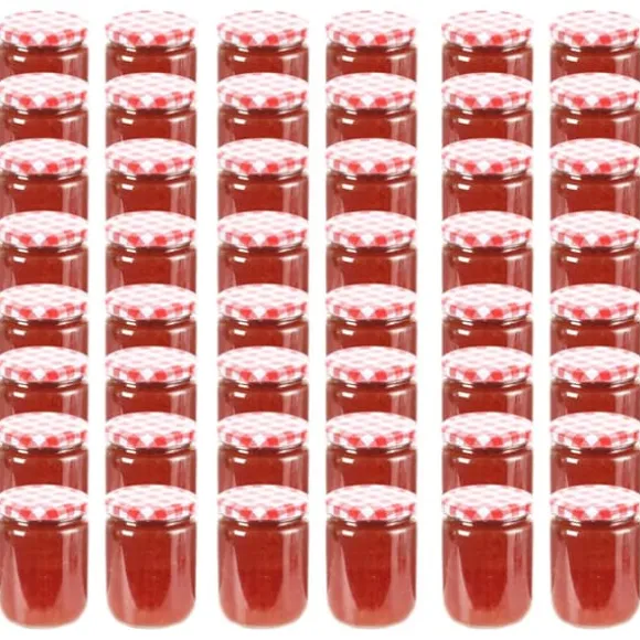 Syltburkar i glas med vita och röda lock 48 st 230 ml Utrusta ditt kök med dessa kreativa syltburkar i glas! De är utrustade med röda och vita lock och varje burk har en kapacitet på 230 ml. De erbjuder en optimal lösning för att förvara chutney, sylt, saltgurkor, konserver, såser etc. Syltburkar i glas med vita och röda lock 48 st 230 ml (1x) Din beställning kommer att levereras i ett paket. Så snart din beställning har packats får du omedelbart din leveransinformation från oss. Vi hoppas att du blir nöjd med ditt köp.