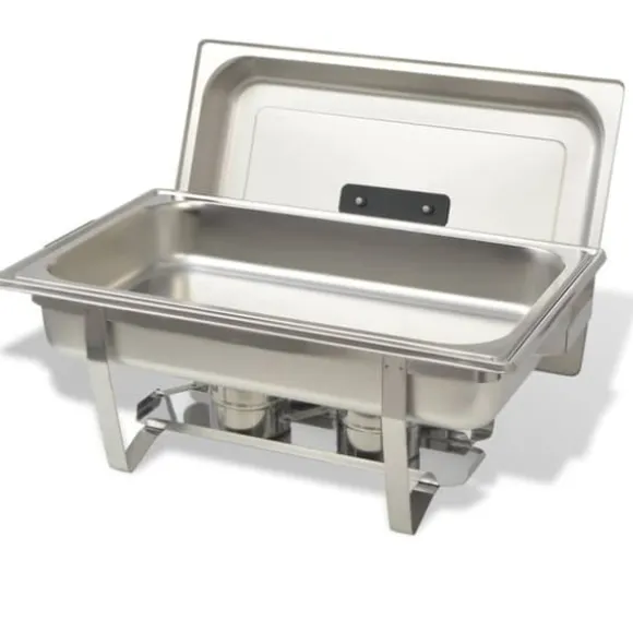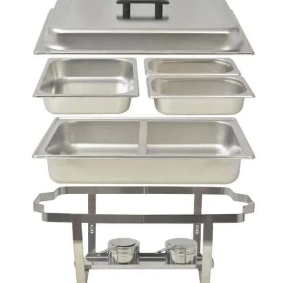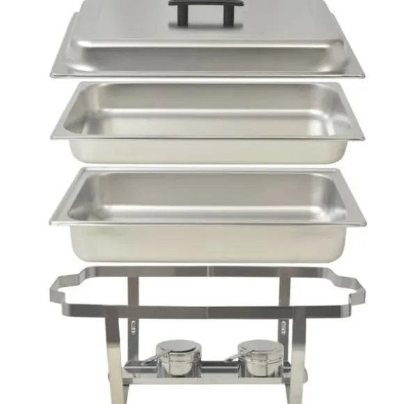 Denna uppsättning varmhållningskärl är tillverkad i högkvalitativt rostfritt stål, har en stadig konstruktion och är enkel att rengöra. Matkärlen har ”Gastronorm” standardmått, vilket tillåter en universell användning och ett brett utbud av kombinationer. Vattenbadet och matkärlen har rundade hörn för enkel rengöring. Locken har ett värmeisolerat handtag och kan praktiskt placeras på stativet tack vare 2 integrerade krokar. Hållarna har två handtag vilket gör varmhållningskärlen enkla att flytta på. Stativen har dessutom en hylla att ställa brännarna på.