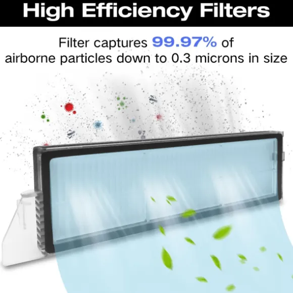 Effektiv filtrering och rengöring: Den högkvalitativa gummiborsten lossar smuts effektivt, medan sidoborstarna når in i hörn och kanter för att ta bort mer smuts, damm och skräp. Det effektiva dammsugarfiltret säkerställer en ren inomhusmiljö.