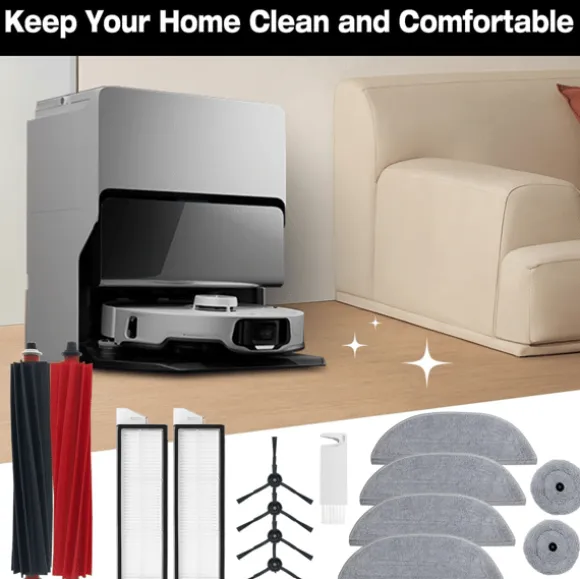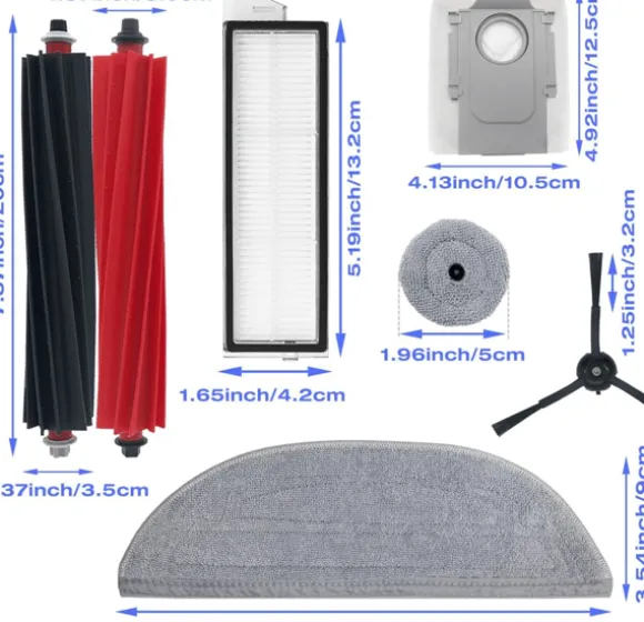 Stor tillbehörssats: Detta set innehåller totalt 19 reservdelar som passar till Roborock S8 MaxV Ultra – huvudborstar, HEPA-filter, olika moppdynor, dammsugarpåsar, sidoborstar och en rengöringsborste. Tillbehören erbjuder optimal kompatibilitet och prestanda för både våt- och torrengöring.