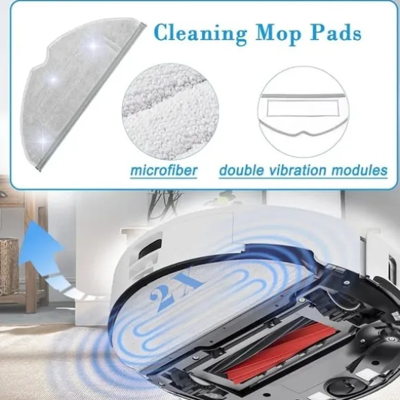 Satsen innehåller huvudborstar med dubbla rullar som ger kraftfullt sug och minskar trassel från hår. Moppdynorna i mikrofiber har god absorptionsförmåga och jobbar tillsammans med en dubbel vibrerande rengöringsmodul för att avlägsna smuts effektivt. HEPA-filtren fångar upp 99,99 % av damm och allergener, vilket förbättrar inomhusluften markant. Regelbundet underhåll och byte av dessa delar gör stor skillnad för både städresultat och hållbarhet.