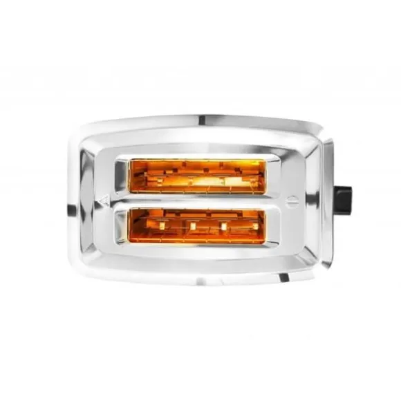 Brödrost – för 2 toast, justering av rostningstid, rostningskontroll, ljussignal och visning, effekt 950 W, material rostfritt stål, färg silver.