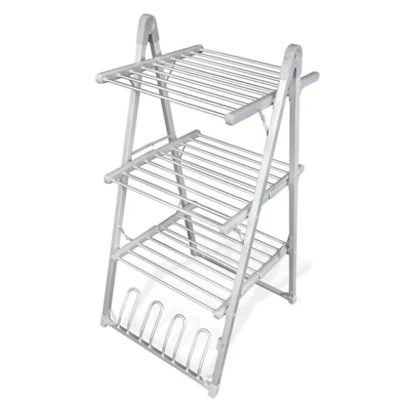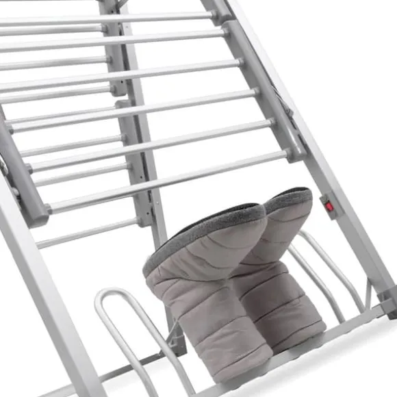 En bekväm och praktisk torkställning för inomhusbruk som torkar dina kläder mycket snabbt och tar lite plats. Perfekt för kalla, råa och fuktiga dagar. Kan även användas som vanligt torkställ utan inkoppling till elnätet.