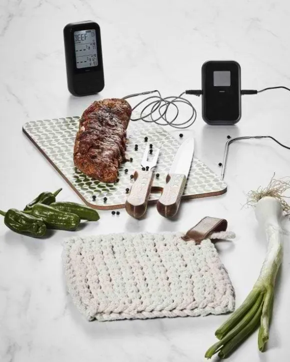 Rejält trancherset i rostfritt stål och handtag i akaciaträ. Filear upp dina grillade biffar på matbordet eller vid grillen. Kniv: 33 cm, blad 20 cm. Gaffel: 26,5 cm, blad 13,5 cm. Packat i presentförpackning i bokformat.