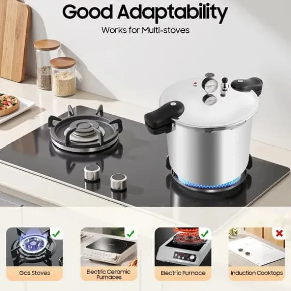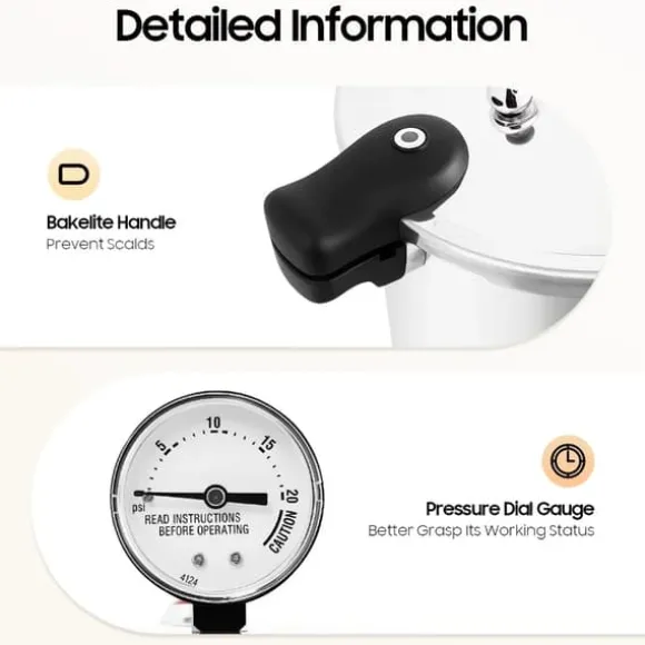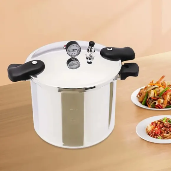Snabb och säker tryckkokare med stor kapacitetDenna tryckkokare i förtjockad aluminiumlegering ger snabb och jämn uppvärmning, vilket kortar ner tillagningstiden och bevarar näringen – perfekt för stora portioner i en hektisk vardag.
