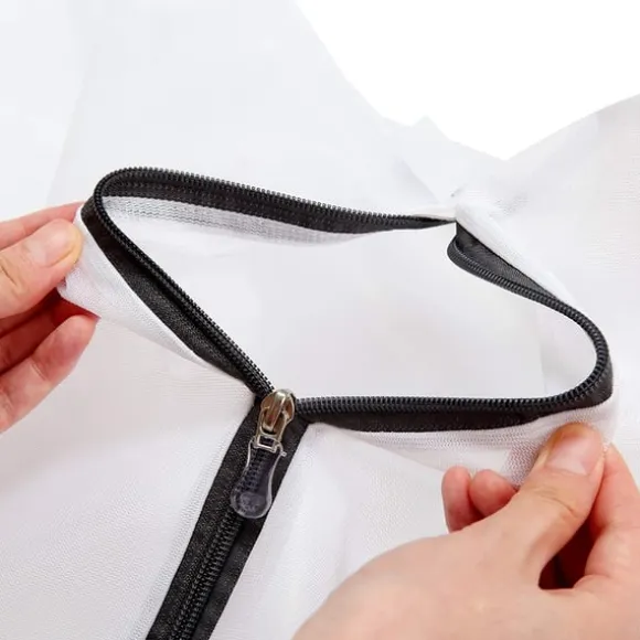 Smart design: Blixtlåset göms så att det inte skadar andra kläder i maskinen. I setet ingår tre tvättpåsar i två olika storlekar. Påsarna tål tvätt och torktumlare upp till 60°C.