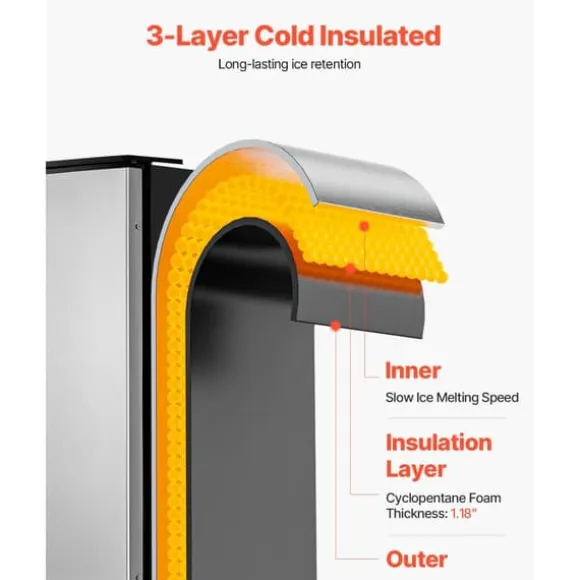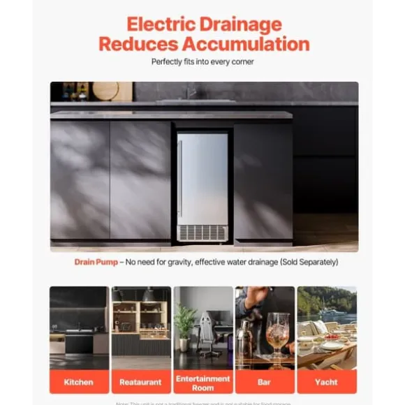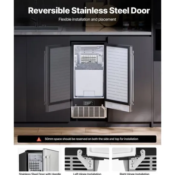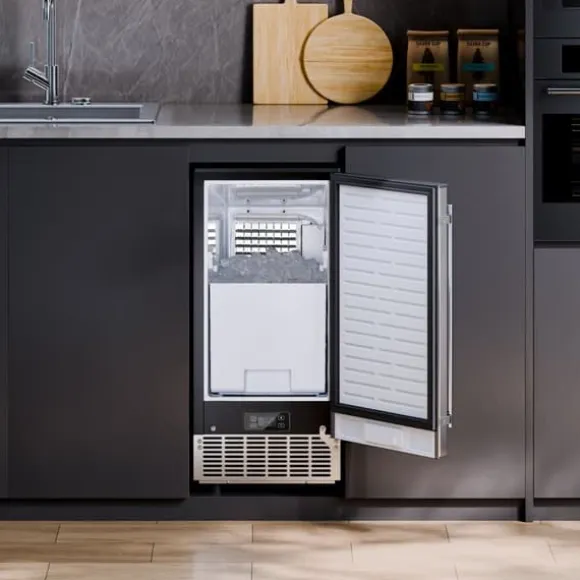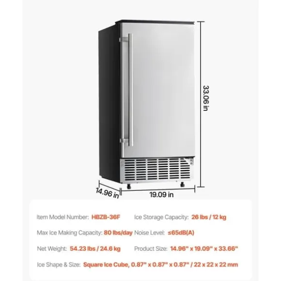 Behöver du snabbt och enkelt producera is för dina fester eller vardagliga behov? Vår inbyggda ismaskin under disk är den perfekta lösningen. Med möjlighet att producera upp till 80 lbs is inom 24 timmar och lagra upp till 26 lbs, är denna maskin effektiv och pålitlig. Den skapar fyrkantiga isbitar på endast 15 minuter och är flexibel nog att installeras på olika sätt.