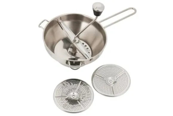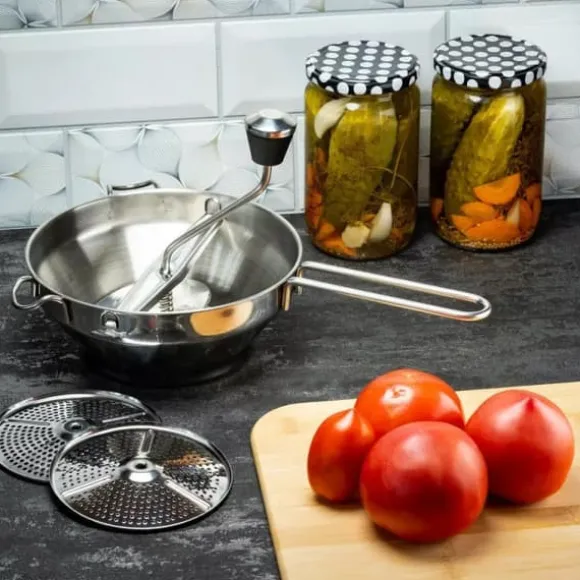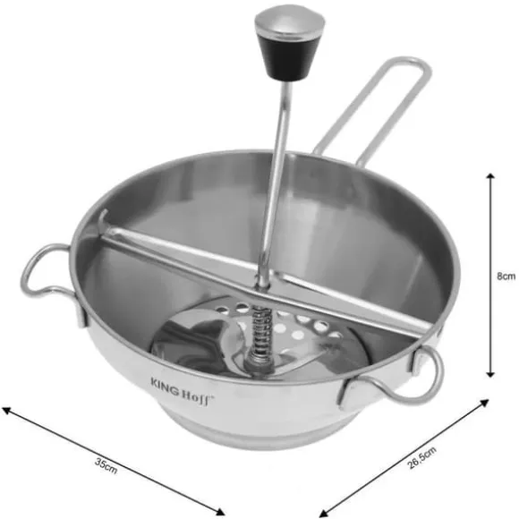 UNIVERSELL MATPASHER FÖR GRÖNSAKER En universell matpuré är ett praktiskt förslag för varje kök. Tack vare produkten kan vi enkelt tillaga konserver, såser, krämer, soppor och puréer. Purén är utrustad med tre utbytbara silar som gör att den kan puréa livsmedelsprodukter till massor med varierande grad av jämnhet. Enhetens ergonomi är också baserad på den genomtänkta designen av handtag och vev. Produkten tål maskindisk Specifikation: ✅ Produktmått: 19,2 x 32,5 x 8 cm ✅ Utrustad med 3 utbytbara blad ✅ Riv grönsaker, anpassad för hemmabruk, enkel och bekväm användning.