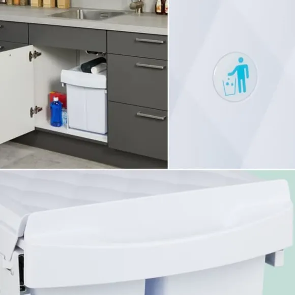 Denna utdragbara avfallsbehållare erbjuder en praktisk lösning för effektiv avfallssortering och platsbesparande installation under diskbänken. Dess teleskopskena säkerställer smidig, full utdragning för enkel åtkomst, medan det uppfällbara locket hjälper till att hålla odörer inne och fungerar även som en praktisk hylla. Designad för enkel integrering i skåp, levereras den med monteringsmaterial för enkel installation.