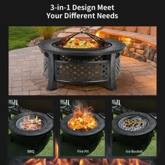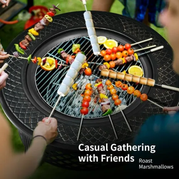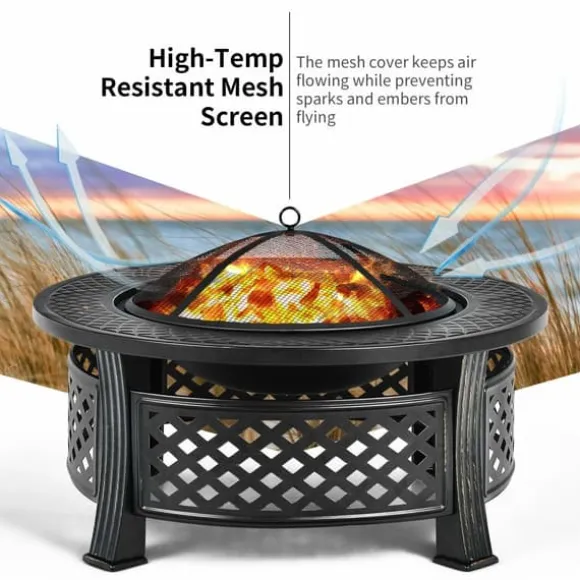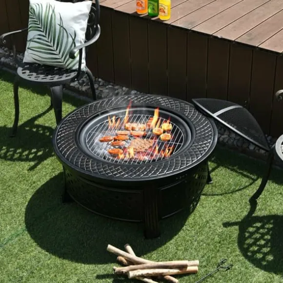 Utomhus eldplats med BBQ-grill och högtemperaturbeständig finish, svart, stål, tyg, 81×48×3 cm (l x b x h), 9 kg