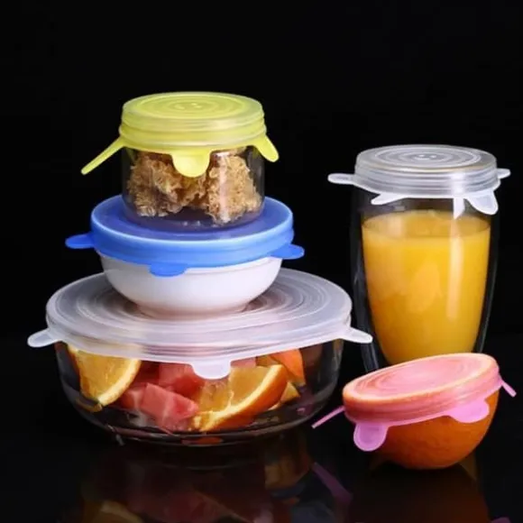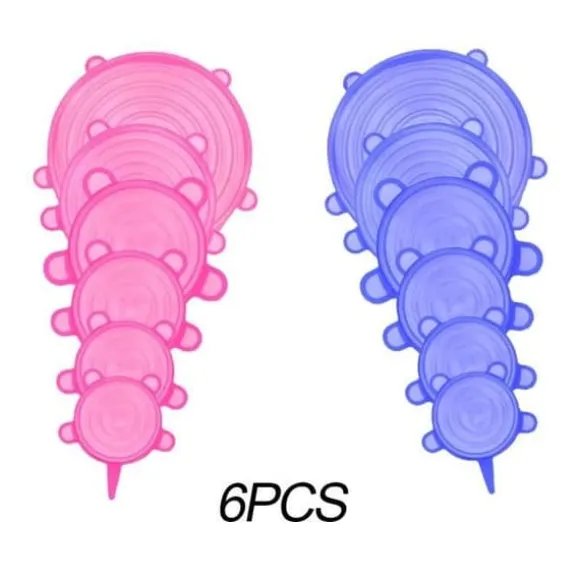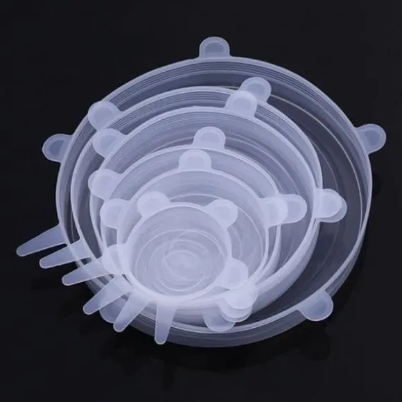 Dessa utvidbara silikontak är perfekta för att förvara dina livsmedel. Med 6 bitar i olika storlekar passar de till olika skålar och burkar. Tillverkade av BPA-fri silikon, är de återanvändbara och passar för mikrovågsugn och kylskåp. Håll dina livsmedel färska och skyddade tack vare deras starka grepp och vattentäthet.