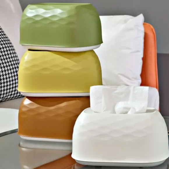 Denna förvaringshållare för mjukpapper i stor kaliber är utformad för att göra det enkelt att hämta papper och minska pappersstopp. Den är lämplig för 99 % av de allmänna mjukpappersmärken som finns på marknaden och finns i fyra olika färger för att möta dina matchande behov. Den praktiska funktionen hos denna servettförpackning gör att du kan förvara vävnader, hålla ditt rum snyggt och lägga till komfort för användaren.