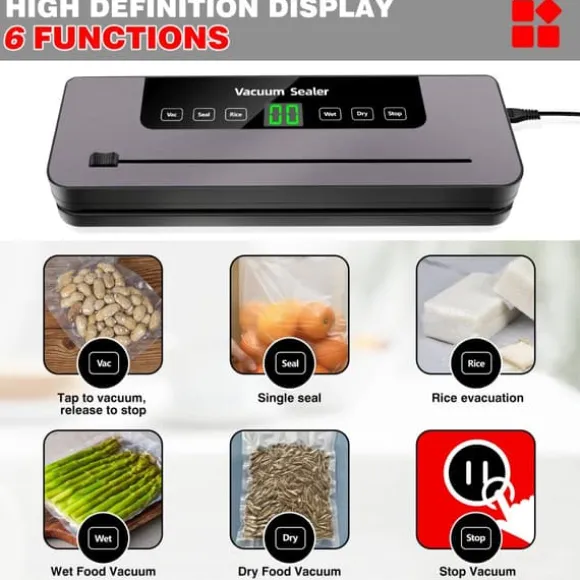 - bevara matens färskhet: denna vakuumförpackningsmaskin tar effektivt bort luft från vakuumpåsar och säkerställer att maten håller sig upp till 7 gånger längre utan att bli dålig, samtidigt som textur och smak bevaras.