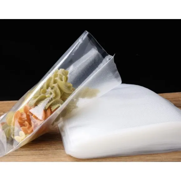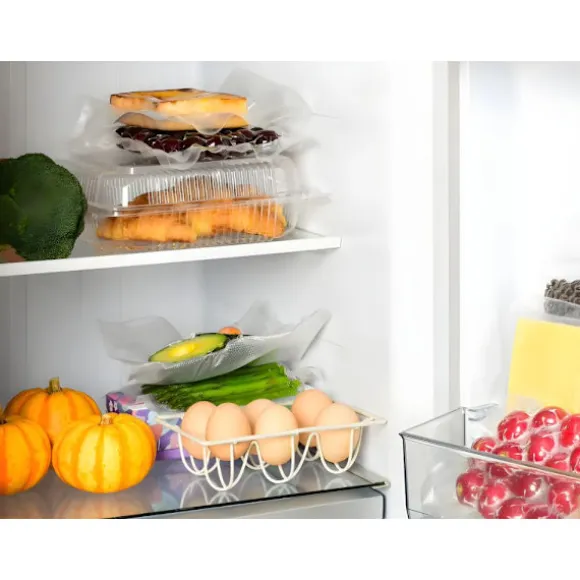 Tillverkade av starkt, flerlagers PA/PE-material, är påsarna riv- och punkteringsbeständiga. Deras mikro-räfflade struktur säkerställer utmärkt luftutvinning och perfekt försegling. De kan användas i både kylskåp och frysar.